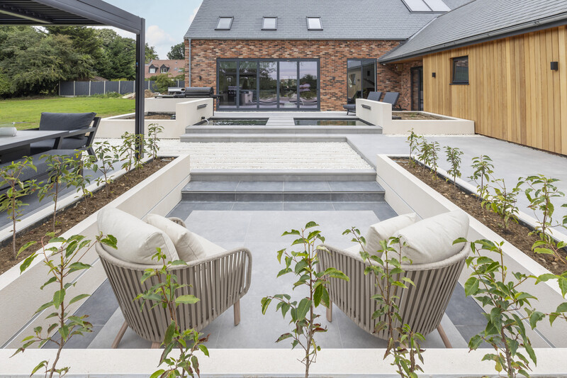 Quality is at the centre of everything we do. We select materials from trusted, reputable suppliers, Italian porcelain tiles, high-grade timber, premium aggregates, quality planting stock, Corten steel, limestone, and professional-grade drainage and groundwork systems. This commitment to higher-spec materials, paired with expert installation, ensures a finish that not only looks high-end but performs exceptionally well throughout all seasons.
