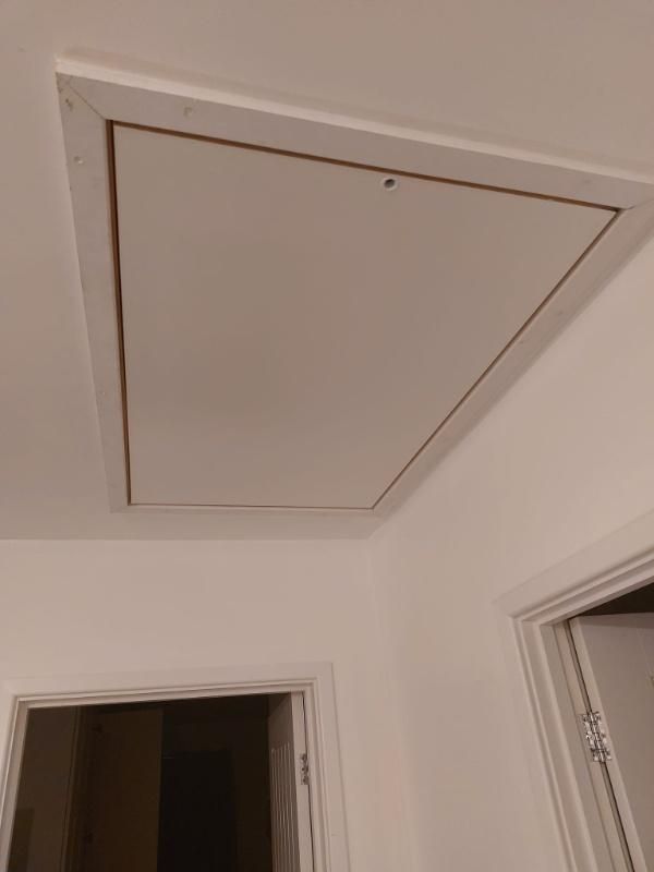 New loft hatch in new location with ladder. Some loft boarding and insulation brought up to standard