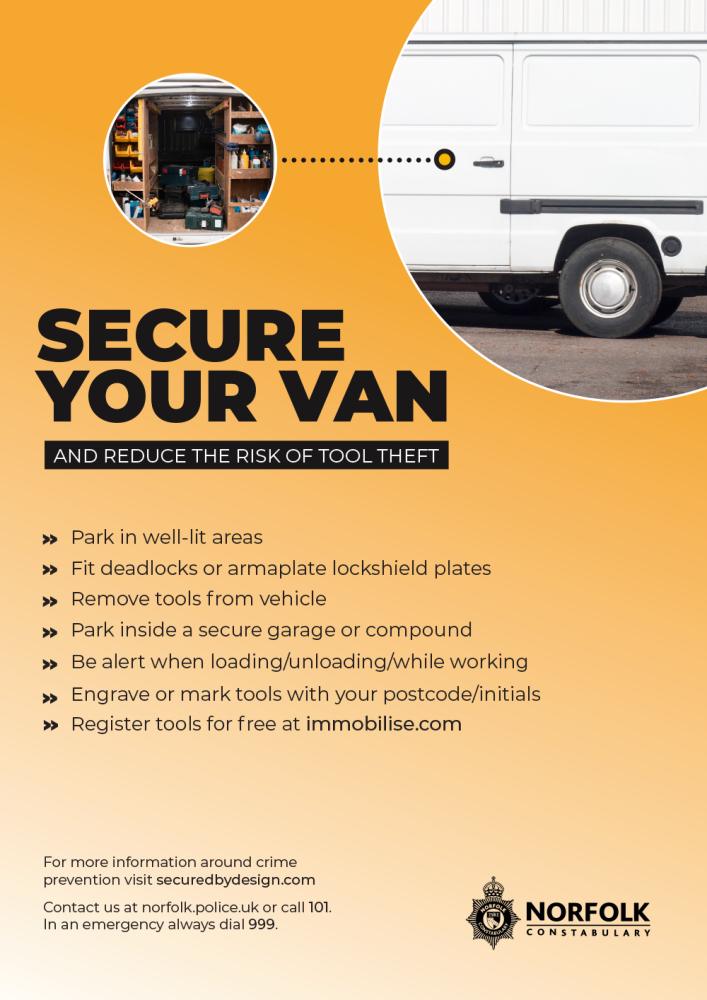 Norfolk Police have had a number of reports over the past few months of tools being stolen from vans cross Norfolk. In some cases, the vehicles were drilled into and forced open.